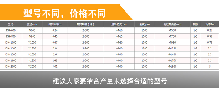 用戶篩分產(chǎn)量不同,選擇的奶粉不銹鋼旋振篩型號(hào)也不同,但是型號(hào)越大的設(shè)備在選材和加工上的成本會(huì)比小型號(hào)的設(shè)備更高,所以沒(méi)相差一個(gè)型號(hào),奶粉不銹鋼旋振篩的價(jià)格就會(huì)提高1000-1500元,小編在這里建議大家要結(jié)合產(chǎn)量來(lái)選擇合適的型號(hào),具體選型指導(dǎo)可以咨詢大漢廠家。
