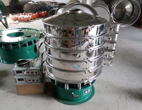 超聲波旋振篩是將220V、50Hz電能轉化為38KHz的高頻電能,輸入超聲波換能器,將其變成38KHz機械振動,從而達到篩分和清網的目地,使微細粉篩分成為易事。