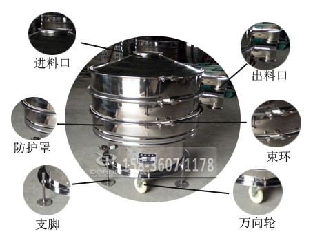 移動(dòng)式不銹鋼旋振篩簡介:移動(dòng)式不銹鋼旋振篩底部加裝萬向輪方便移動(dòng),可根據(jù)現(xiàn)場的需要安裝使用