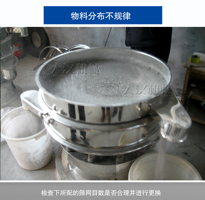 檢查下篩網與出料口是否水平或者安裝位置過高,正常情況下應水平或高出6mm左右,不同物料出料口高度設計也不一樣。